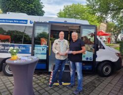 Foto: v. li. n. re.: Heinz Igel (Bürgerbusverein Kalkar), Jürgen Rauscher (Initiator Bürgerbus für Kerken)
