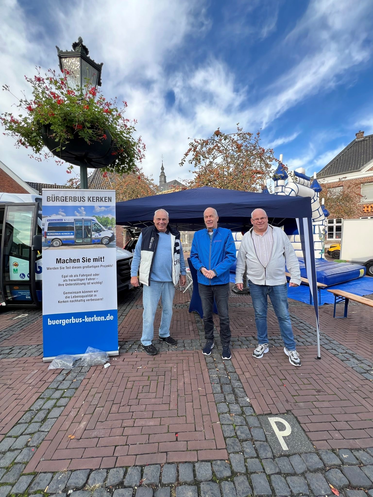 Bereits auf dem Webermarktfest in Nieukerk informierten sich zahlreiche Anwohner am Infostand über das Projekt. Beim Herbstmarkt am 06.10.2024 wird der Bürgerbusverein die Bürgerinnen und Bürger erneut über ihre Idee „Bürgerbus für Kerken“ informieren. Auch der Bürgerbus der Stadt Kalkar wird wieder an Infostand vor Ort sein, damit die Bürger sich einen Bürgerbus mal Live anschauen und Probesitzen können.